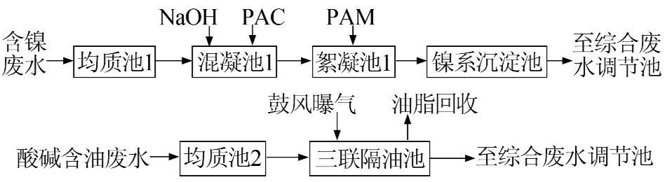圖1 含鎳及酸堿含油廢水預處理流程